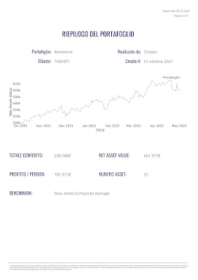 Da inizio pianificazione cioè da Ottobre 2021, RotAzione ha un risultato positivo del 20,39% mentre il nostro benchmark, Il Dow Jones appunto, risulta essere praticamente invariato con un +0,63%.